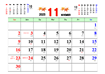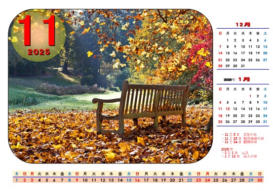 ・カレンダーのダウンロード(図をクリックすると少し拡大したサンプル図を見ることができます。ダウンロードファイルの実際の印刷サイズはA4です10月、11月のカレンダーがダウンロードできます。