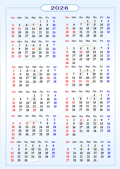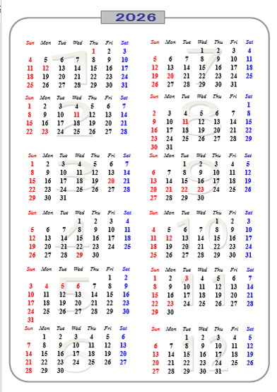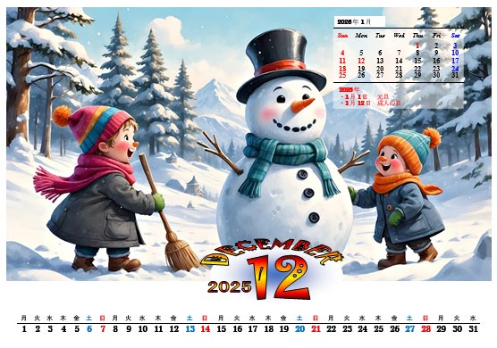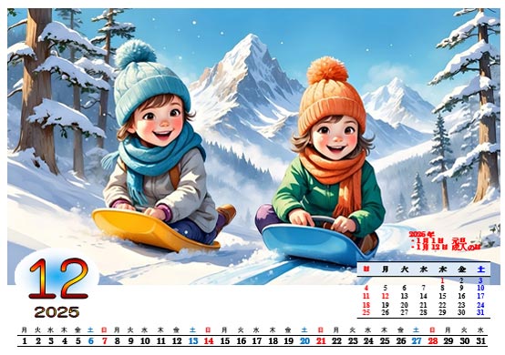 ・カレンダーのダウンロード(図をクリックすると少し拡大したサンプル図を見ることができます。ダウンロードファイルの実際の印刷サイズはA4です11月、12月のカレンダーがダウンロードできます。