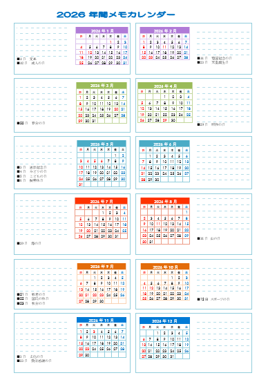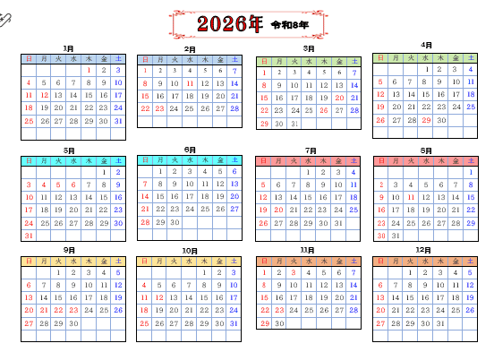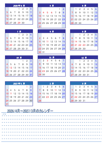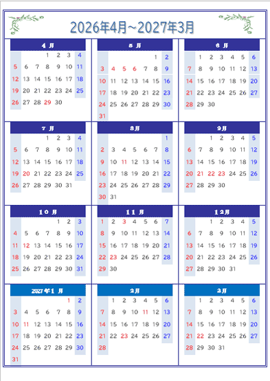 ・好きなカレンダーをダウンロードしてください。 Word2003以上でお使いください。